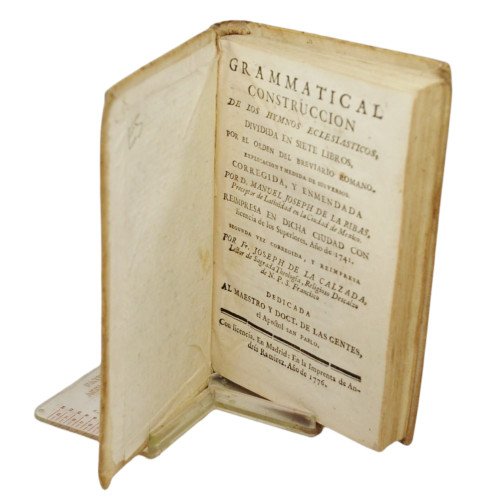 Materia: Libro de la segunda mitad del siglo XVIII. Lingüística. Construcción gramatical de los himnos eclesiásticos - José de la Calzada.
