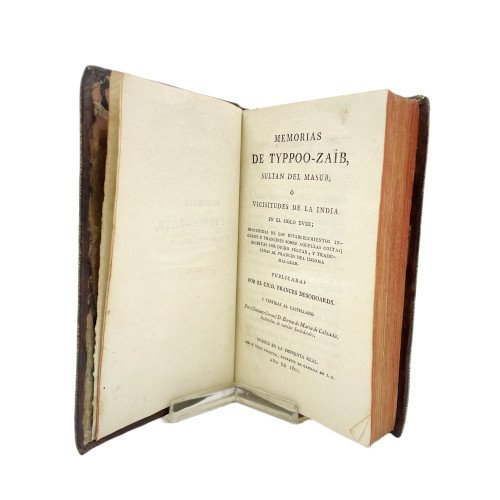 MEMORIAS DE TYPPOO-ZAÏB SULTÁN DEL MASUR O VICISITUDES DE LA INDIA EN EL SIGLO XVIII; PROCEDIDAS DE LOS ESTABLECIMIENTOS INGLESES Y FRANCESES SOBRE AQUELLAS COSTAS ESCRITAS POR DICHO SULTÁN, Y TRADUCIDAS AL FRANCÉS AL IDIOMA MALABAR.