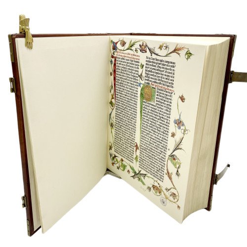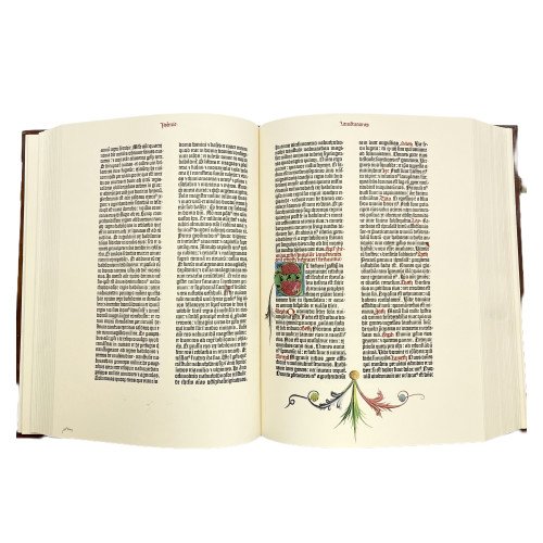 Notes: The first printed book in the world. From Mainz. Facsimile with the same characteristics, paper and watermarks as those used by Gutenberg. Two facsimile volumes and study book.