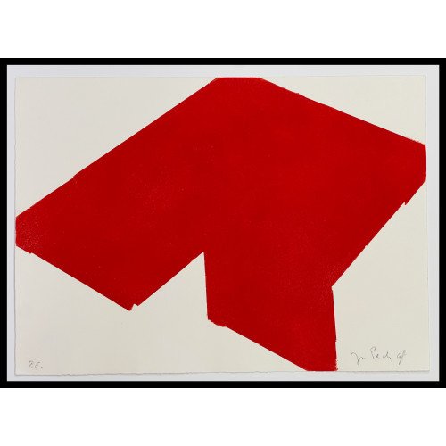 Este grabado, característico de su distintivo universo, es un testimonio de la exploración de Croft sobre los contenidos poéticos del espacio, el volumen y la luz. Al igual que en sus aclamadas esculturas con espejos y cristales, esta pieza juega con la interacción entre espacios llenos y vacíos. La pureza de la forma y la intensidad del color rojo establecen un diálogo visual potente que invita al espectador a una conexión profunda con la singularidad de su visión.