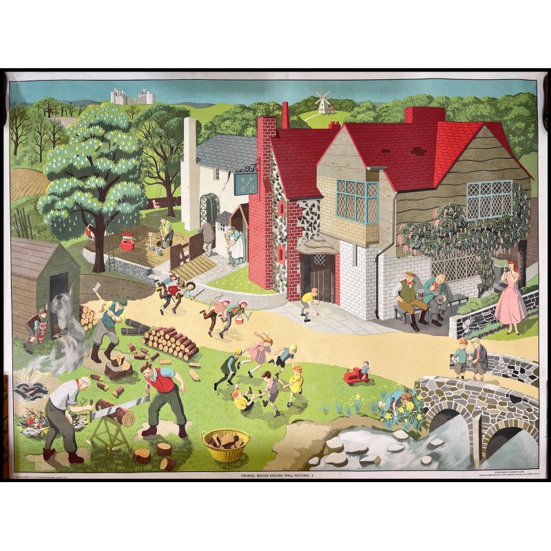 Excelente muestra de la serie de carteles educativos "General Service English Wall Pictures" ilustrados por Elizabeth Skilton y publicados alrededor de la década de 1950 por Lowe & Brydone Ltd (o Longman Group Ltd).