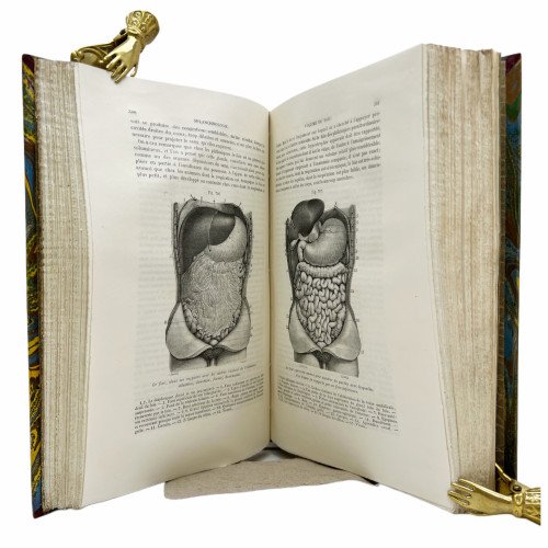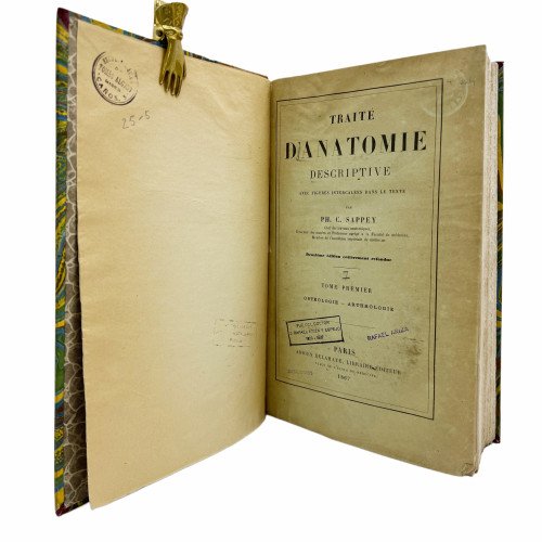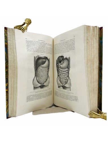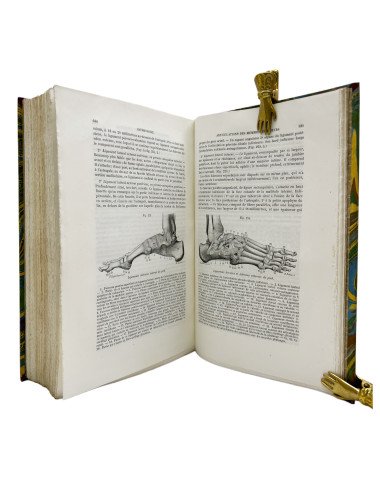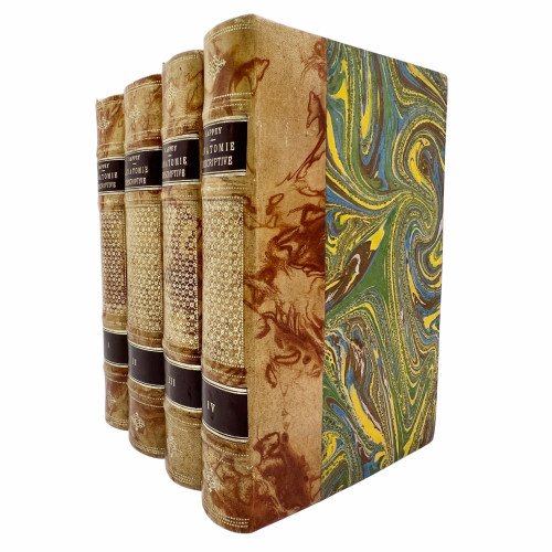 Descripción física: Cuarto (24, 5 x 17 cm.) 4 tomos Tomo I osttéologie - arthrologie: XVI páginas, 708 páginas. Tomo II Myologie - Angiologie: 876 páginas. Tomo III Neurologie. 875 páginas. Tomo IV Splanchnologie - Appareil de la digestion - Appareil de la respiration de la sécrétion urinaire et de la génération. 803 páginas. Encuadernación holandesa piel de época con nervios, dorados y tejuelo en el lomo.