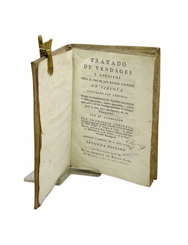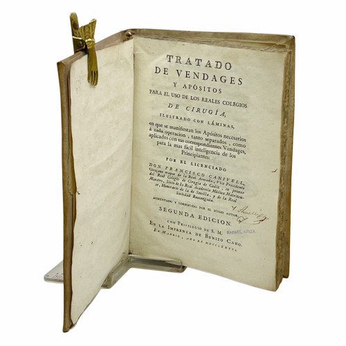 TRATADO DE VENDAGES Y APÓSITOS PARA EL USO DE LOS REALES COLEGIOS DE CIRUGÍA ILUSTRADO CON LÁMINAS EN QUE SE MANIFIESTAN LOS APÓSITOS NECESARIOS A CADA OPERACIÓN, TANTO SEPARADOS, COMO APLICADOS CON SUS CORRESPONDIENTES VENDAGES, PARA LA MAS FACIL INTELIGENCIA DE LOS PRINCIPIANTES: POR EL LICENCIADO DON FRANCISCO CANIVELL,... AUMENTADA Y CORREGIDO POR EL MISMO AUTOR . SEGUNDA EDICIÓN. CON PRIVILEGIO DE S.M.