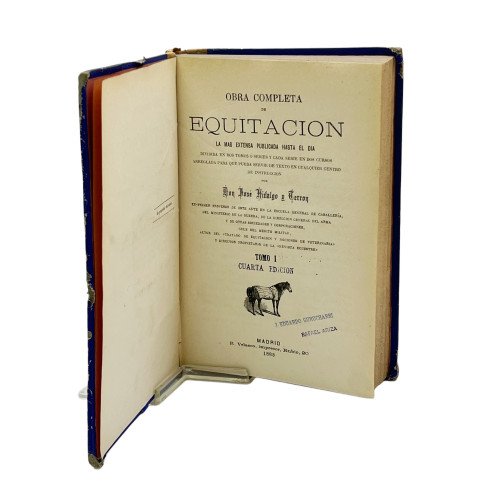 OBRA COMPLETA DE EQUITACIÓN. LA MÁS EXTENSA PUBLICADA HASTA EL DÍA, DIVIDIDA EN DOS TOMOS O SERIES Y CADA SERIE EN DOS CURSOS, ARREGLADA PARA QUE PUEDA SERVIR DE TEXTO EN CUALQUIER CENTRO DE INSTRUCCIÓN.