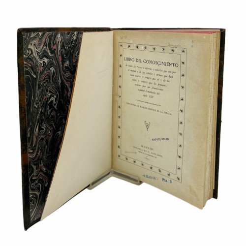 LIBRO DEL CONOSÇIMIENTO DE TODOS LOS REYNOS Y TIERRAS Y SEÑORIOS QUE SON POR EL MUNDO Y DE LAS SEÑALES Y ARMAS QUE HAN CADA TIERRA Y SEÑORIO POR SY Y DE LOS REYES Y SEÑORES QUE LOS PROVEEN, ESCRITO POR UN FRANCISCANO ESPAÑOL Á MEDIADOS DEL SIGLO XIV, Y PUBLICADO AHORA POR PRIMERA VEZ CON NOTAS DE MARCOS JIMÉNEZ DE LA ESPADA.