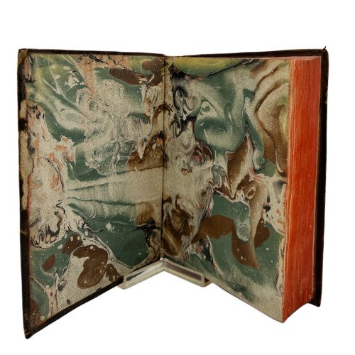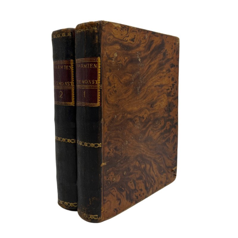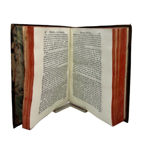 Descripción física: Octavo mayor (20,5 x 15 cm.) 2 tomos. Tomo I: 22 hojas, 480 páginas. Tomo II: Portada, 525 páginas. Encuadernación plena piel pasta española de época con tejuelo rojo en el lomo.